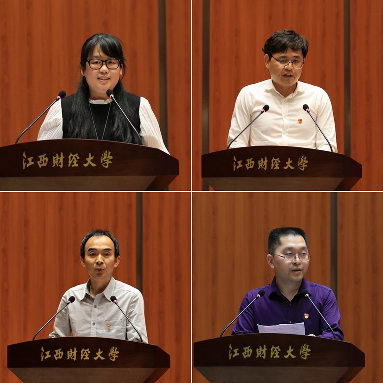 2017年度思想政治工作先进集体代表、法学院党委书记贺三宝、统计学院党委书记叶绍义,2017年度优秀班主任标兵代表、科研处副处长、信息管理学院班主任方玉明,2017年度辅导员年度人物代表、国际学院分团委书记廖春妍分别在会上作交流发言。
