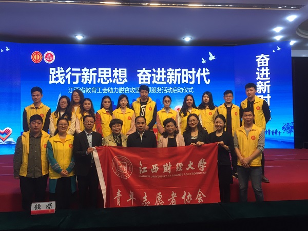 4月10日下午,江西省教育工会举行“践行新思想·奋进新时代”助力脱贫攻坚志愿服务活动启动仪式。校工会主席刘金凤、校团委副书记杨婉琪、校医院叶玉和及15位青年教工参加了启动仪式。
