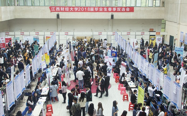 4月13日,春雨淅沥,我校2018年“春季就业推进周”系列活动之毕业生春季双选会,在南区大学生活动中心顺利召开。上午9点多,招聘大厅内早已人头攒动,场内集聚了120家进校招聘的企业代表和前来求职的毕业生同学。在多个招聘展位前,应聘同学已自觉排起长长的队伍,等待着企业HR进行面试筛选。招聘会吸引了包括中国平安保险东莞分公司、远东控股、江中集团等在内的120家省内外企业参会。招聘会共为毕业生提供了5475个就业岗位,其中多个企业要求应聘学生具有研究生学历,部分企业还提供了国际贸易等涉外工作岗位。来自我校及南昌市周边部分高校的逾七千名毕业生共同参加了见面会。