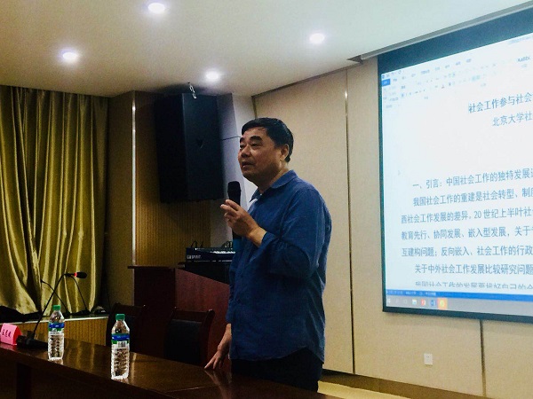 王思斌教授认为,社会工作专业嵌入国家治理体系、社会治理体系的现代化是发展的重要机遇。习近平总书记在十九大报告中的有关精神以及李克强总理提出的发展专业社会工作等内容都证明发展社会工作大有可为。为此,他详实地讲解了社会工作参与社会治理的谱系结构和理性实践的内容。王教授认为,首先就社会治理类型而言,社会工作参与社会治理是属于服务性治理,特别是体现在社会工作、社会权利和社会保障的第三方介入的层面上;其次,该谱系结构下的社会工作有治理的成分,既是服务型治理,也是发展性治理,还是协商性治理;最后,社会工作者在服务型社会治理过程中,要自觉贯彻社会工作服务的谱系理念,必须时刻牢记社会工作的基本使命。(文/人文学院 罗奇奇 图/曾洋)