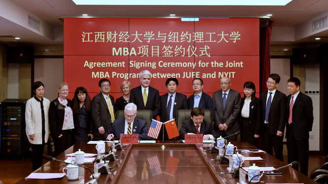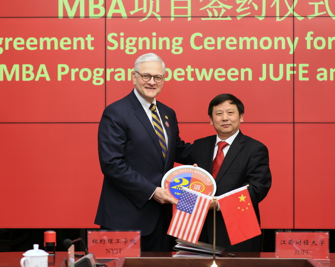 两校的合作协议续签仪式在新图文信息大楼第一会议室举行。校长卢福财向来宾介绍了我校的基本情况。他表示,近年来我校国际化办学取得了丰硕的成果,这些成绩的取得离不开广大海外合作院校同仁的共同努力。纽约理工学院作为我校海外合作历史最长的院校之一,为我校国际化人才培养提供了很大的帮助,搭建了优质的平台。