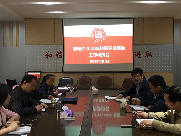 4月18日上午,教务处召开了校园环境整治工作动员会,处领导班子成员、各科室责任人、教学楼管理人员等参加了会议。