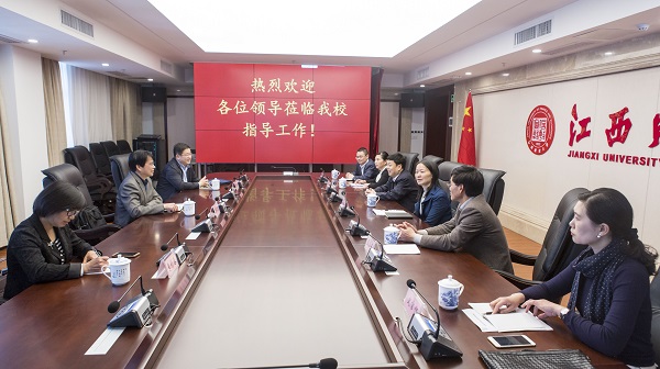 4月17日下午,江西省智库建设调研座谈会在我校召开。校党委书记王乔会见了出席会议的省社联副主席汤水清,省委宣传部理论处处长熊空军、省社联智库建设与成果管理处处长曹彩蓉等来宾。副校长刘小丽参加会见并出席会议。