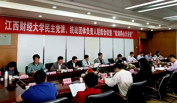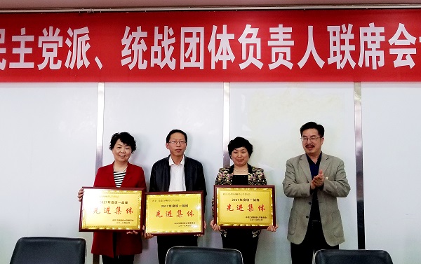 2017年度统一战线先进集体代表、民革江西财经大学委员会主委包礼祥作经验介绍。先进个人代表、民进江西财经大学委员会副主委桂荷发作典型发言,分别就如何加强民主党派梯队建设和如何提升参政议政能力水平等作了交流分享。