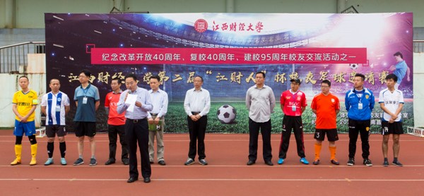 各支球队的代表分别作了赛前发言。校友们表示,无论走到哪里,我们都自豪的对别人说我是江财毕业的。我们因为有这样的赛事,所以我们更加热爱生活,更加热爱健康,也更加热爱母校。这样的一个赛事活动,使得我们全国的校友倍加珍惜我们在江财学习的经历和身份认同感。这种足球的比赛让我们所有的校友跨过学届、跨过级别、跨过行业、跨过省份、跨过所有的千山万水,像兄弟姐妹像亲人一样团聚在一起。最后,校友们都一一对母校表达了自己的感谢之情。