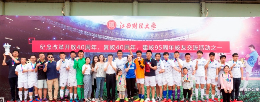5月1日中午12时,第二届“江财人”杯校友足球赛决赛结束。参加决赛的长三角校友队和广东校友队为各地校友和在校师生奉献了一场异常精彩的足球攻守大赛,最终长三角校友队技高一筹,以5:1击败上届亚军广东队,成为校友杯新的霸主,将在学校为此次赛事专门设计的景德镇陶瓷青花缸流转奖杯上首次刻上队伍的名字。广东队屈居亚军,但也以其不屈不挠的精神获得观众的喝彩,虽败犹荣。在季军争夺战中,上届冠军深圳队2:1击败云贵川校友队,夺得第三名。赛后,王乔、蒋金法、阙善栋分别为各奖项获得者颁发了奖杯和奖牌,至此,本届校友足球赛圆满落幕。校友们对本届足球赛赞赏有加,表示此次足球赛是一场有内容,有情怀,有付出,有回忆的赛事。作为一场加强了解,凝聚共识的活动,本次校友足球赛为广大校友提供了一个沟通交流的广阔平台。赛后,各地校友满怀对母校的依依不舍之情,踏上了各自工作的新征程。