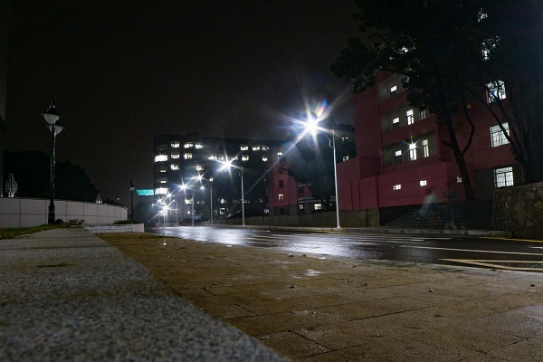 灯光亮起来了,夜晚的校园也美起来了。晚上加班结束的老师们从新停车场出发,一路畅通无阻。校园内的道路循环互通,处处都是出口。教学楼前的星驰路、图文信息楼前的腾蛟路和教职工公寓前人杰路,使蛟桥园形成了“校园内三环”的交通路况。环境优美、交通便利。很多老师反映,有时需要加班,在学校比在家更舒心、更高效。