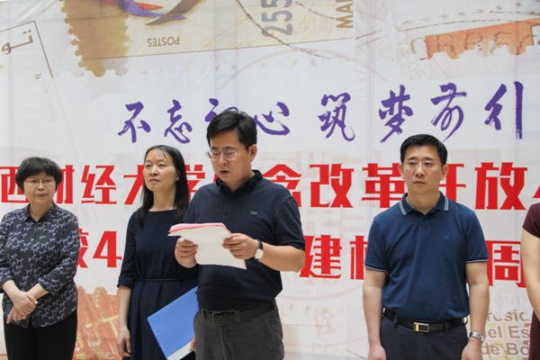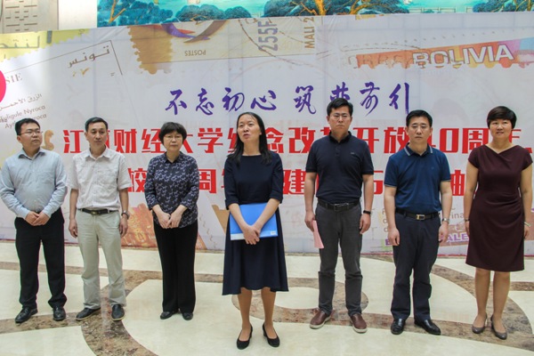 上午9时30分,邮展开幕式正式开始。副校长刘小丽为邮展开幕式致辞。她对举办此次邮展活动的意义表示肯定。刘小丽指出,高校是立德树人的地方,要以德育人,以优秀的文化熏陶人。这次展览的40框邮票,给我们一个了解历史、认识过去的窗口,带领我们感受改革开放40年、江财复校40年的峥嵘岁月。每一枚小小的邮票背后都有其丰厚的文化底蕴和历史内涵,通过邮票知历史、懂荣辱、树文化、立品德,真正实现文化创新、文化自信。