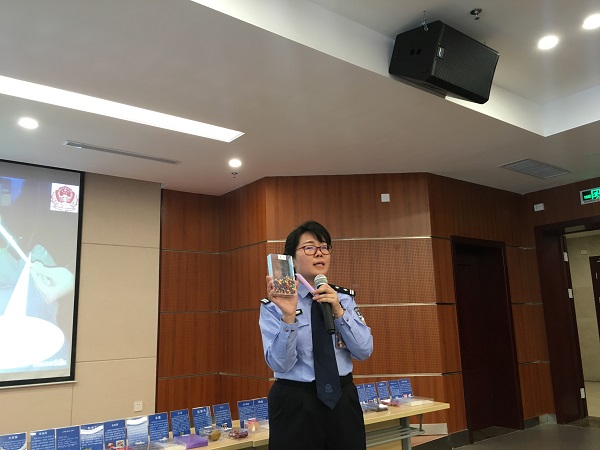 南昌市第一强制戒毒所政委刘瑾进行了禁毒知识宣讲,她从毒品的种类、毒品的危害、防范与对策等方面,结合工作中的实际案例,向各位同学宣讲了毒品危害和防范措施。刘瑾政委还在现场摆放了二十多种毒品模型,详细向大家讲解辨别毒品和防范毒品的方法。她特别强调:禁吸第一口!一朝吸毒,终身戒毒!