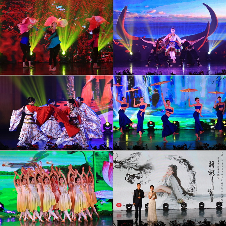 本场晚会共11支舞,由独舞、双人舞、齐舞组成。胡彬以大学跳的第一支舞《花腰红》作为开场,赢得观众热烈掌声。接着与音乐系舞蹈生共同完成了极具民族风情的维族舞《美丽的姑娘》、双人舞《恋》、藏族舞《牛背摇篮》以及现代舞《大鱼》、古典舞《如烟》。作为嘉宾,胡彬的师弟师妹们共同为我们展示了秧歌《九儿》、汉唐宫廷舞《青青子衿》、傣族舞《傣家的女儿傣家的雨》、古典舞独舞《水墨孤鹤》。最后,由胡彬领舞,音乐系全体舞蹈生伴舞共同演绎的《莲颂》拉下本场晚会的帷幕。对于观众来说,这是一场视觉盛宴,而对于胡彬而言,这就是她的青春,她的蜕变。(文/艺术学院 田晨瑞 图/孙坚 编辑/匡琳)