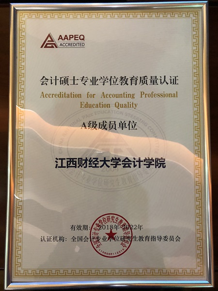 AAPEQ认证是我校第二个国内权威商科认证,是继我校中国高质量MBA教育认证(CAMEA认证)获得通过后的又一个学科建设和研究生教育领域取得的重大突破。我校完成AAPEQ认证工作历时2年半时间,在校党委、校行政的正确指导下,在校属相关部门和专任教师、校外导师、毕业校友、实习基地及雇主单位的通力合作下,经过会计学院的不懈努力,为实现“百年名校”江财梦迈进又提交了一份满意的答卷。(图文/会计学院 曾海龙 肖安生 编辑/匡琳)