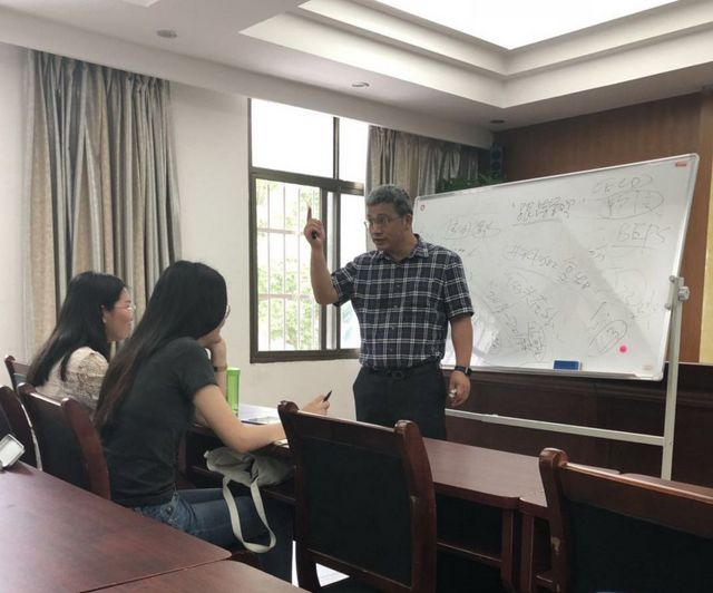 本次讲座的主题是“后BEPS时代中国转让定价税务管理及其风险应对实务”。讲座主要由企业关联业务申报表的填写、国别报告填写和同期资料准备这三大块组成。张博士从关联关系的类型、关联关系的确定、关联交易类型以及如何填写企业关联业务申报表这四大方面来对讲座的第一部分内容详细展开论述。对于第二部分国别报告的内容,张博士通过从填报主体、豁免填报情形、报送时间、主要内容、信息交换方式和特别纳税调整时提供国别报告的情形这七部分清晰的把国别报告的填制流程以及相关的注意事项展现在我们眼前。最后一部分的同期资料内容,张博士从同期资料的文档体系、提供同期资料的必要准备工作、同期资料的提供与管理和同期资料准备中出现的问题这四部分教会大家如何准备一份高质量的企业同期资料。张博士用它深厚的专业功底和扎实的实战经验为我们上了一堂在课本上根本学不到的国际税收转让定价的实务技能课程,张博士在台上辛苦的讲授了八个小时,台下的我们也认真聆听学习了八个小时,善教乐学的精神在今天的课堂上得到了很好的体现。