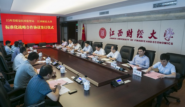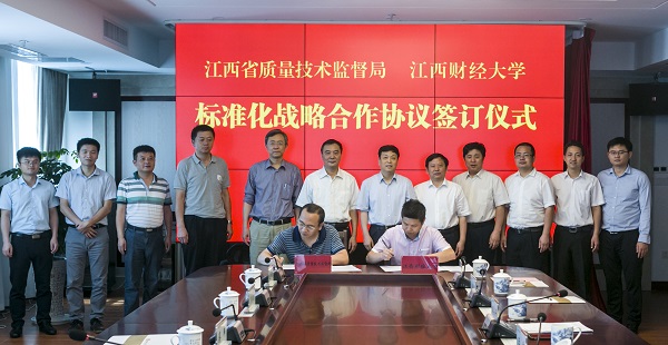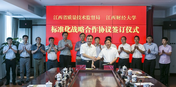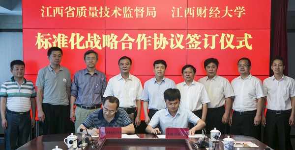 5月16日上午,江西财经大学与江西省质量技术监督局标准化战略合作签约仪式举行。校党委书记王乔,校长卢福财,副校长王小平,省质监局党组书记、局长王福平,党组成员、副局长蔡玮出席签约仪式。