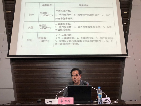 5月20日,MPAcc会计名家公益大讲堂顺利举行。大讲堂由中国会计学会、全国会计专业学位研究生教育指导委员会主办,我校会计发展研究中心、会计学院承办。活动邀请到我国知名经济和管理学学者、财政部“会计名家培养工程”人选、南京大学博士生导师李心合教授作题为“重新解读财务报表”的学术报告。全国MPAcc教指委委员、会计学院首席教授张蕊和部分青年教工及200余名全日制研究生参加,副院长曹玉珊教授作主持。