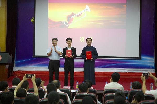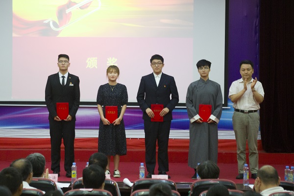 校党委副书记蒋金法,校党委常委、宣传部长王金海,校工会主席刘金凤分别为获得一、二、三等奖的学院代表队颁奖。