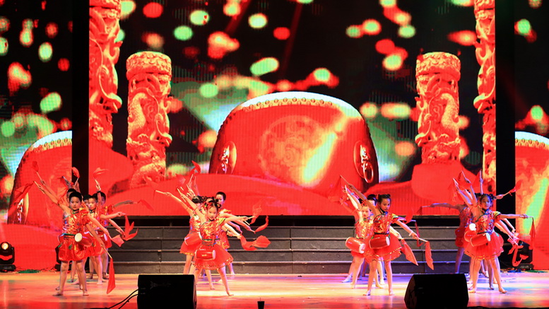 随着6位小主持的闪亮登场,艺术表演正式开始。开场舞《红红的日子》拉开了此次庆典的序幕。欢腾的鼓点、欢快的舞姿,马上将现场气氛调动起来。