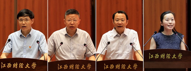 校纪委副书记、监察处处长李法贵,人事处处长彭元、后勤保障处处长李新海和国际学院党委书记涂艳,分别代表本部门在会上作表态发言。(发言稿另发)