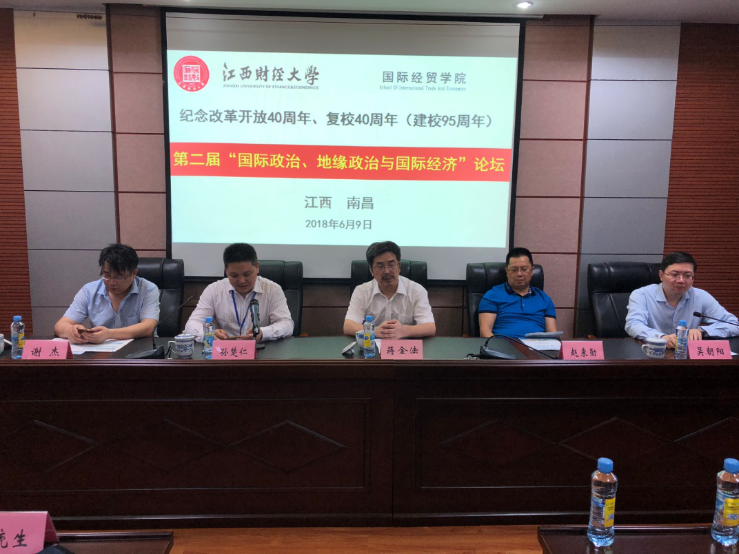 6月9日,第二届“国际政治、地缘政治与国际经济”学术论坛在我校成功举办。论坛由全国高校国际贸易学科协作组青年论坛、中国区域科学协会新经济地理专业委员会主办,国际经贸学院承办。校党委副书记蒋金法出席论坛开幕式。开幕式由国际经贸学院院长吴朝阳主持。全国高校国际贸易学科协作组青年论坛副秘书长孙楚仁教授、日本神户大学经济学部赵来勋教授、浙江工商大学国际商务研究院副院长谢杰教授以及江西财经大学国际经贸学院首席教授许统生等出席本次论坛。