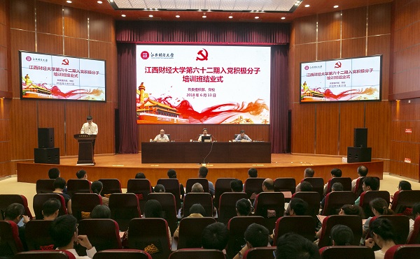 6月13日下午,中共江西财经大学委员会党校第六十二期入党积极分子培训班结业式举行。校党委副书记、党校校长蒋金法,校党委常委、组织部长许基南和相关学院党委(党总支)书记、分党校校长出席结业式。党校常务副校长徐翔主持结业式。