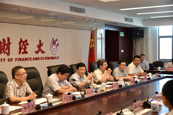 6月15日下午,由江西省委政研室和江西财经大学联合承担的课题“构建江西特色生态文明体系研究”对接会召开。省委副秘书长、政研室主任、改革办副主任沈谦芳,校党委书记王乔教授,党委副书记蒋金法教授,副校长王小平教授,省委政研室黄光明副主任,省委政研室经济处陈勤刚处长,省委政研室综合处黄宗华处长等省委政研室10人,生态文明研究院院长谢花林以及生态文明研究院全体研究人员参加课题对接会。课题对接会由王小平教授主持。