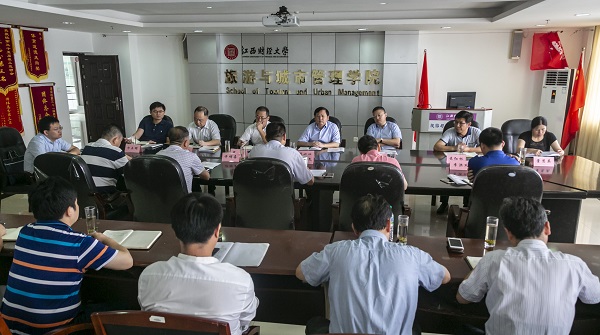 6月21日上午,校长卢福财到旅游与城市管理学院调研,党办校办、人事处、教务处、科研处、研究生院、财务处等部门负责同志随同调研。