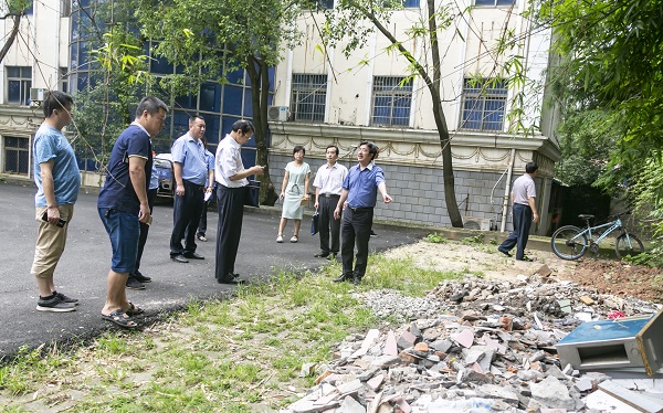 蒋金法对北湖湖面及周边道路经过前期督查整改后的效果表示赞许。认为目前校内绿树成荫、道路整洁的总体环境是大家齐心协力、真抓实干的结果。接下来,要特别注重对各类卫生死角的排查清理。此次督查发现,校医院大楼背后、游泳馆围墙内均存在不同程度的废弃物品无人清理问题,围墙边有装修垃圾堆积,北湖花坛破损、杂草未及时拔除,这些问题现场得到了分解落实。“我们的校园不仅要干净,还要美丽。”蒋金法强调,并指示在做好保洁的同时还要搞好园林绿化,让校园更加宜居、宜学、宜工作。
