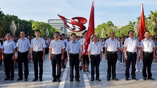 党办校办、党委组织部、宣传部、学工部、团委负责人和各学院党团干部、学生党员、入党积极分子共2000余人参加活动。(文/国旗队 彭莉婷 图/孙坚)