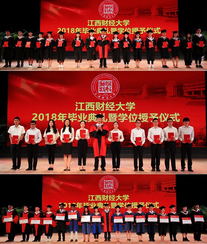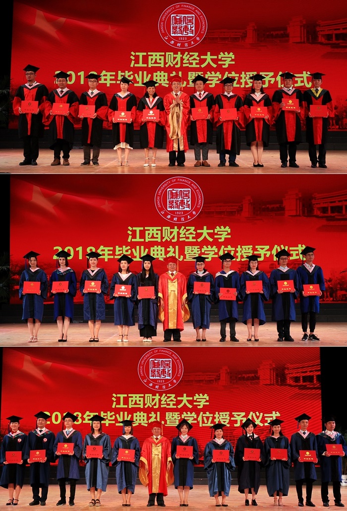 2018届毕业生获得的是由学校自主设计的新版学位证和毕业证,融合了校徽、校名、校训、崛起雕塑等独特的江财元素。而象征江西财经大学学术权威的权杖高100厘米,取意“百年江财”。用三足铜鼎托起校徽,寓意深厚学术底蕴和团结合作精神,寓意学校海纳百川、汇聚群英。鼎的四周刻有“信敏廉毅”校训,配以饕餮纹,展示中国“和”文化。青花纹样铜环、铜柱,凸显江西特色,“缠枝莲纹”寓意学子奋发向上、学校繁荣昌盛。