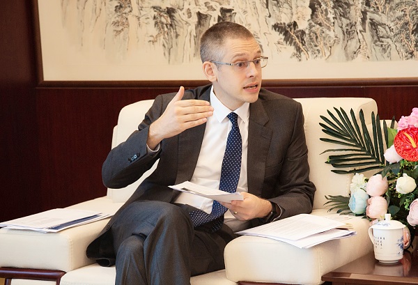 教育领事来访期间,还与国际学院进行座谈。国际学院副院长陈卫东介绍了国际学院的英语教学情况以及学生赴海外留学情况并就口语测试以及短期外教推荐方面向Rogers领事寻求建议, Rogers先生表示:江财为雅思认可院校,可获得领事馆提供的每年为期一天的雅思授课教师培训课程,与此同时领事馆可以通过国际教育服务网站平台帮助寻找海外合作院校。(文/国际合作与交流处 编辑/匡琳)