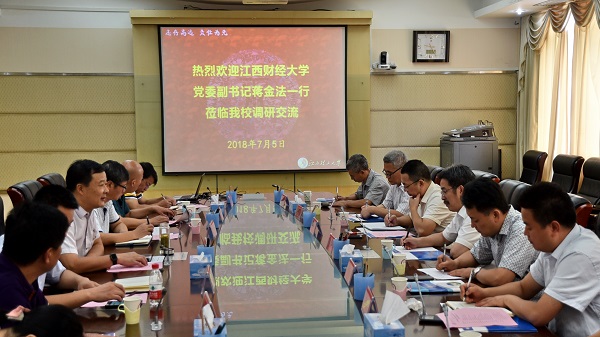 蒋金法对两所兄弟高校热情接待表示感谢,并肯定了其办学成就,同时介绍了我校相关工作。他希望江财与赣南师范大学、江西理工大学保持长期友好往来的传统,今后进一步加强交流,深化合作。调研组成员分别与两所学校相关部门负责人进行了切磋交流,就校园环境卫生、师德师风建设、意识形态管理、安全保卫等方面工作进行了互通互鉴。