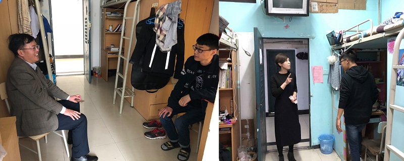 从3月份开始,人文学院党委书记杨尚勇、副书记李援就频繁走访毕业生寝室,叮嘱毕业季安全、了解工作落实情况、关心学习生活情况,像“拉家常”一样同毕业生们促膝长谈,就毕业打算和未来发展方向等问题听取毕业生的想法,给予一定建议。提醒毕业生要做好适应新环境的准备、做好吃苦耐劳的准备,要提高应变能力;要永葆孝心以感恩父母的养育之恩、永葆责任心和进取心以担当社会责任、要老实做人踏实做事。言语间流露出的都是对学生的关爱和期待,就像和自己孩子一样交谈。许多毕业生也纷纷表示会牢记嘱托,不辜负老师和学院的期望。