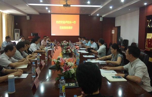 7月12日下午,校长卢福财到外国语学院、人文学院调研,党办校办、人事处、教务处、科研处、研究生院、财务处等单位负责同志随同调研。