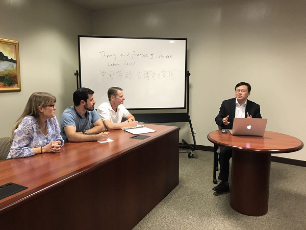 7月11日,杨德敏为圣玛丽大学法学院部分师生做了一场关于“中国劳动法的理论与实践”的学术讲座,就中国劳动法的理论前沿与法律规定与美国圣玛丽大学法学院师生进行交流。