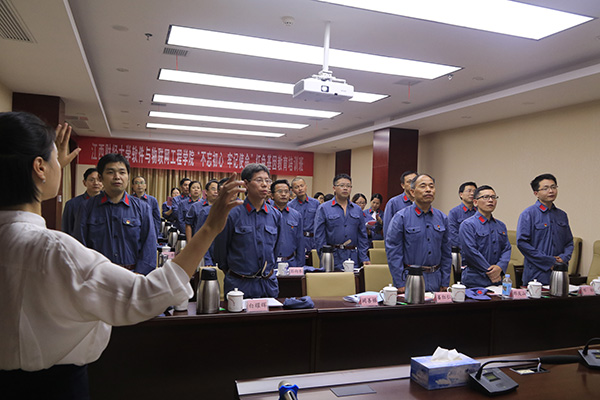 开班仪式在江西省委宣传部井冈山干部培训中心基地正式开始,培训中心主任欧阳志荣致欢迎词,阙善栋讲话,并授班旗。