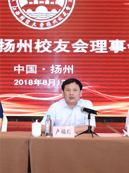卢福财向大会致辞,他充分肯定了扬州校友会的各项工作,高度评价了扬州校友会成立以来所取得的成绩。对广大校友持续关心支持母校发展、助力母校实现“百年名校”江财梦表示感谢,对扬州校友会新一届领导班子表示祝贺并提出殷切希望。随后,卢福财向校友们介绍了母校的发展近况,并诚挚邀请扬州校友参加母校复校40周年、建校95周年系列庆祝活动。
