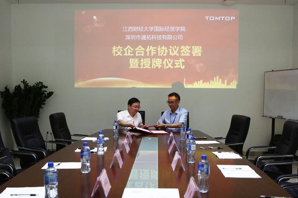 8月22日,国际经贸学院院长吴朝阳、党委书记胡建国一行四人到深圳市通拓科技有限公司参观考察。吴朝阳代表学院与公司签署了校企合作共建实习就业基地协议书,双方举行了基地授牌仪式。