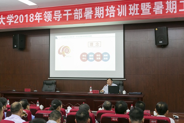 8月26日下午,校长卢福财以“面对新时代的本科教育怎么看、怎么办、怎么干”为题,给我校2018年领导干部暑期培训班学员作专题讲座。讲座由副校长阙善栋主持。