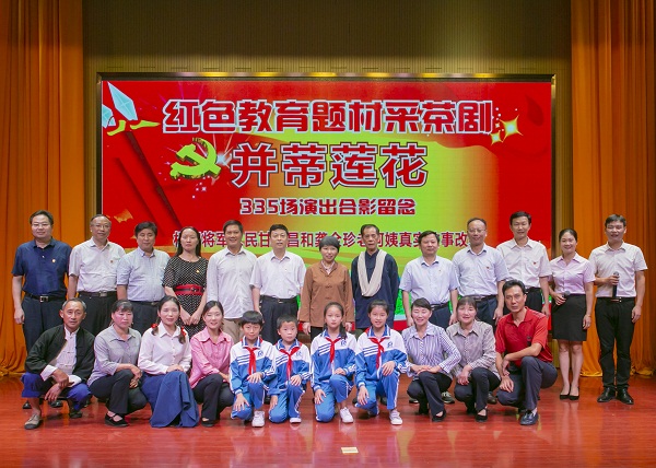 “一身戎装经历多少枪林弹雨,一介布衣时刻牵挂姐妹兄弟。你看淡名利,走下高位,回到最初那个梦想的开始。”在专题片《初心》的伴随声中,由沿背村农民自编自导自演的红色教育题材采茶剧《并蒂莲花》拉开帷幕,该剧用生活点滴片段真实地再现了甘祖昌、龚全珍的感人事迹,反映了他们淡泊名利、无私奉献、艰苦奋斗、不忘初心的共产党人情怀和追求。全剧情节感人,地气十足,有笑点、泪点,具有浓厚的地方特色和莲花采茶戏的风