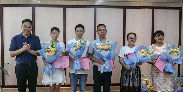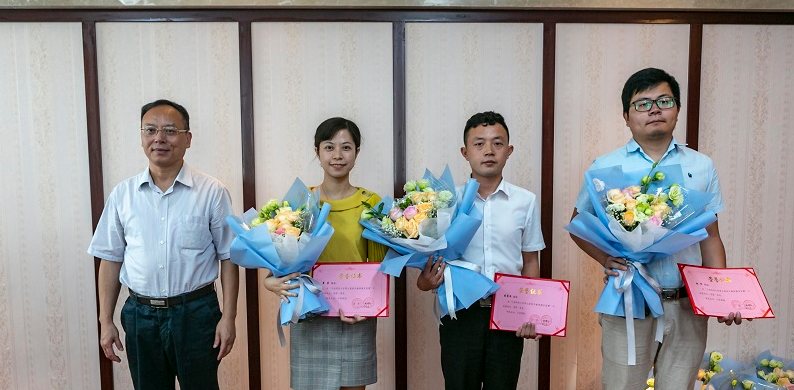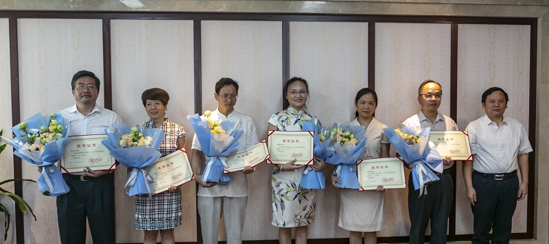 校长卢福财,副校长刘小丽,纪委书记杨建林,副校长王小平、欧阳康、袁雄为获得“从教三十年”荣誉的教师代表、第四届全国教学竞赛三等奖获得者、第三届江西省青年教师教学竞赛一等奖、三等奖获得者,第四届校级青年教师教学竞赛获奖者颁发证书。