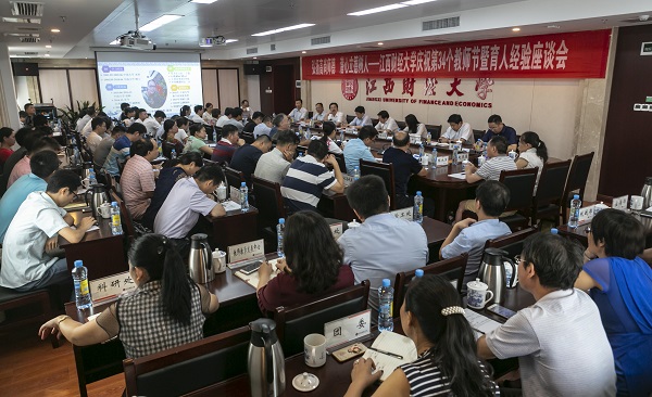 在喜迎2018级新生入学的日子里,我们迎来了第34个教师节。9月7日,我校召开庆祝第34个教师节暨“弘扬高尚师德 潜心立德树人”育人经验座谈会。校领导王乔、卢福财、蒋金法、刘小丽、杨建林、王小平、欧阳康、袁雄出席座谈会。座谈会由蒋金法主持。