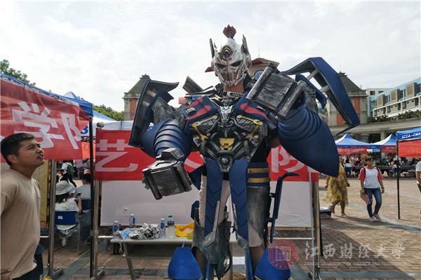 在十二生肖广场的两侧,有两个学院用自己独有的特色吸引着众多行人的目光。“泡沫变形金刚”尽显艺术创新活力,“现场书法表演”展现人文传统国粹。