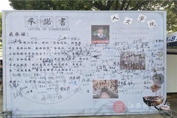书法是汉字的书写艺术,与武术、中医、京剧并称为我国四大国粹。人文学院的现场书法秀既体现出学院独有的人文气息,又展示出中国国粹的传统魅力。集体列队于十二生肖广场唱校歌,使报道的新生“未入江财门,先起江财情”,签名墙上的句句承诺对大学生活的憧憬,人文学院自制微红色电影的放映、新华社的采访,无不体现着人文的活力与社会媒体对江财迎新的重视。