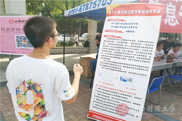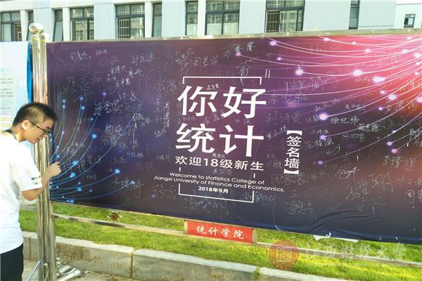 新生入学第一天、开学第一堂课、大学生活的第一年……这些具有纪念性意义的时刻都值得被用心记录。信息管理学院、软件与通信工程学院、统计学院等等学院都为新生提供了拍纪念照的特色展板。信管学院的“火车票”、软件学院的“学生证”、统计学院的“签名墙”……这些有趣的展板很好地贴近了新生的生活,记录下了精彩的瞬间。除了“个性”展板外,信管学院可以检测年龄的人脸识别系统以及统计学院拍的迎新视频都给舟车劳顿的新生带来了江财的温暖。