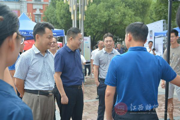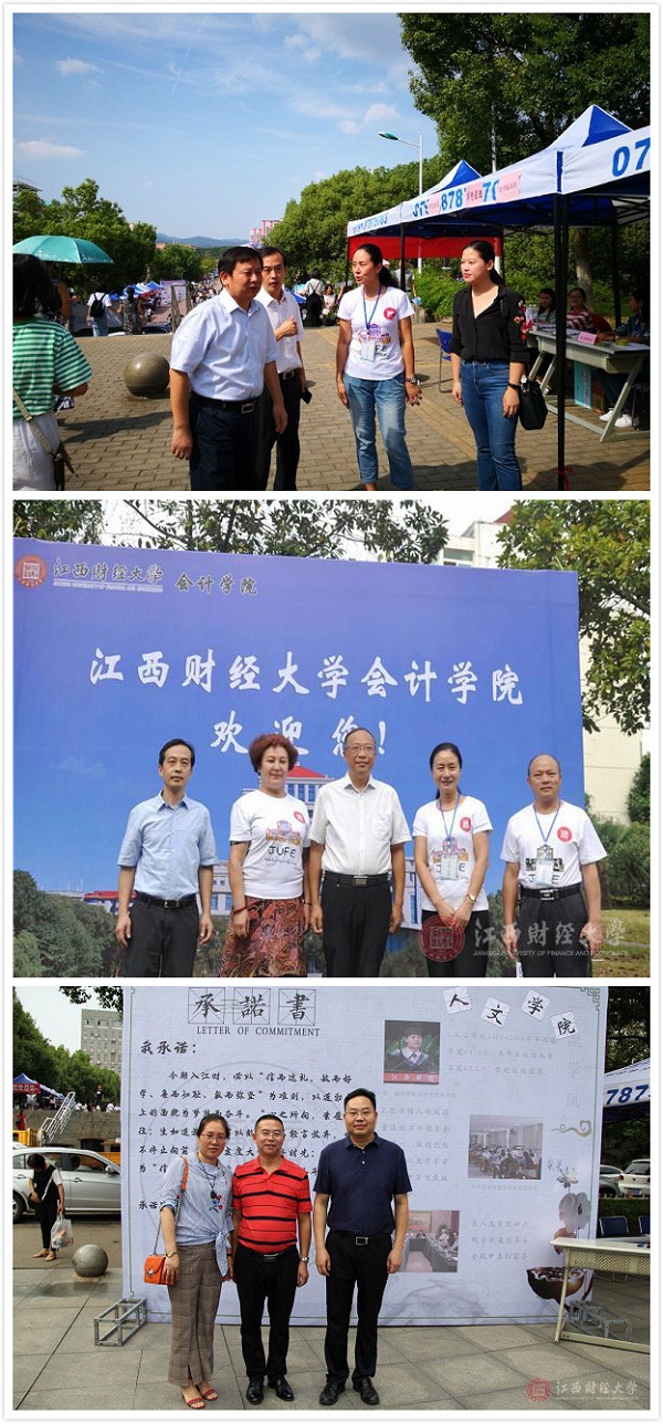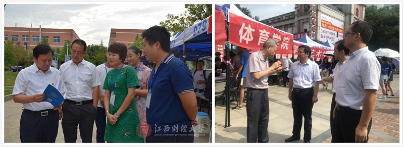 当日下午,卢福财、袁雄、阙善栋一行视察了信息管理学院的的迎新点并对信息管理学院迎新点特色化服务频频点赞。