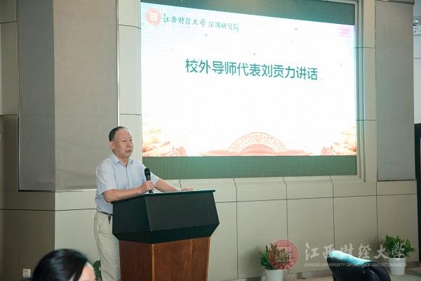 校外导师刘贡力先生以邵逸夫为例,希望全体学生可以坚持不懈,遇到挫折不气馁,以积极向上的态度面对人生。