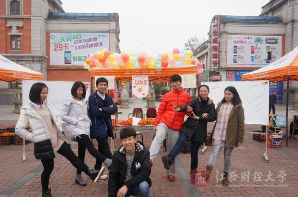 由江西省学生联合会主办、江西财经大学营销达人社协办的江西省“契合度杯”蜜橘营销大赛复赛实战营销环节即将进入尾声,并于11月29日举行了统一的校园摆点活动。十四支队伍在麦庐十二生肖广场与一食堂门口各显神通,进行了最后的比拼。