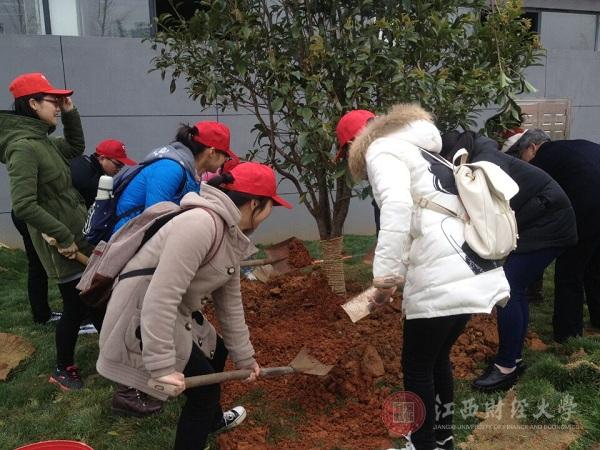 3月11日,工商管理学院青年志愿者协会组织开展了以“栽一棵希望之树,育一颗感恩之心”为主题的植树活动。江西财经大学后勤处许秀胜,工商学院党委副书记黄雨虹、分团委书记杨婉琪身体力行,为志愿者们做出表率,种下一棵棵希望之树。