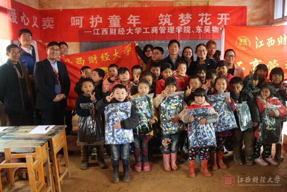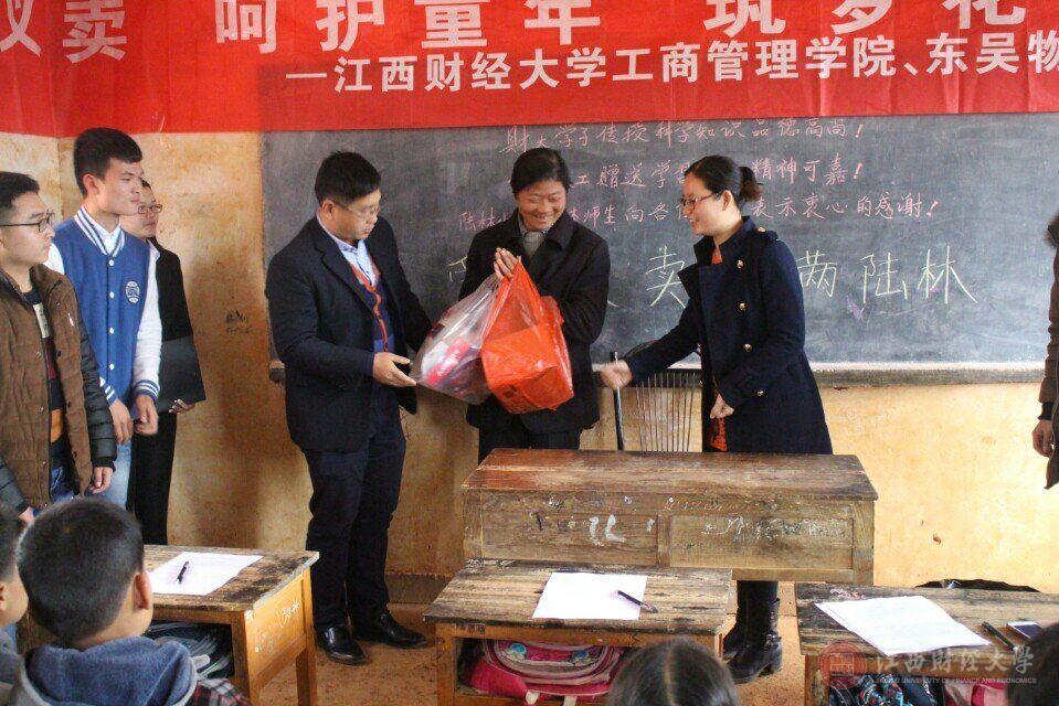 捐赠仪式上,杨婉琪和东吴物业代表人分别致辞。在致辞中,杨婉琪对工商管理学院六年来对陆林小学风雨无阻的关爱与帮助表示了肯定。随后,杨婉琪与东吴物业负责人分别将颜料、羽毛球拍、 足球赠与校长。志愿者们将孩子们组织起来,将崭新的书包分发给他们。孩子们虽然很兴奋,却依旧乖乖地站在队伍中,眼里期望的光芒与那一声甜甜的“谢谢”让志愿者的心里暖洋洋的。捐赠活动结束后,志愿者们又照常例进行了支教活动。