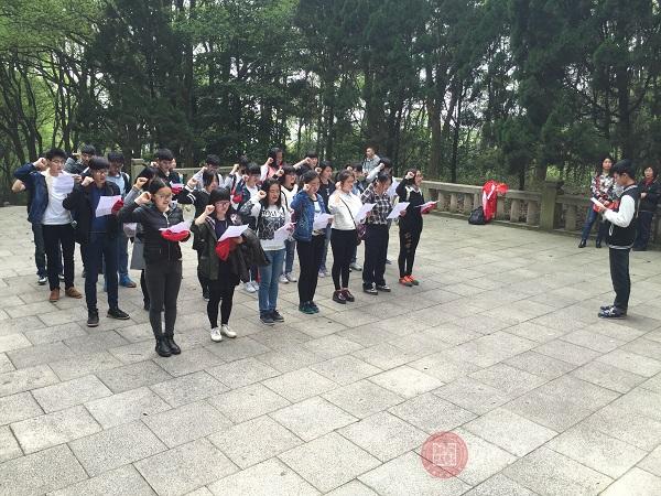 烟雨缭绕,志愿者们身着深色服装,穿过青松苍柏,把融入了深深的尊敬与追思的花圈和挽联轻轻放置于墓碑前。一分钟默哀,庄严宣誓,志愿者们用最传统的方式向为革命而牺牲的烈士表达了无限崇高敬意和哀思,同时也感受着革命烈士永垂不朽的爱国激情。