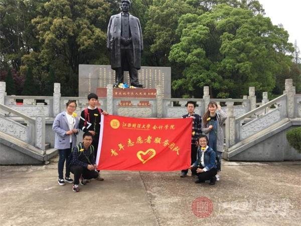 南昌,英雄城,是革命的起源,是新中国的开始;这里,有无数英雄长眠,有多少英魂栖息。4月4日,清明节,一个缅怀先烈的日子,我校会计学院青年志愿者协会(以下简称会院青协)特开展了“缅怀革命先烈,弘扬爱国精神”的纪念活动。志愿者们在八一起义纪念馆忆往昔烽火豪杰,在方志敏墓园仰怀英雄遗志,并通过网络为烈士们献上最崇高的敬意。